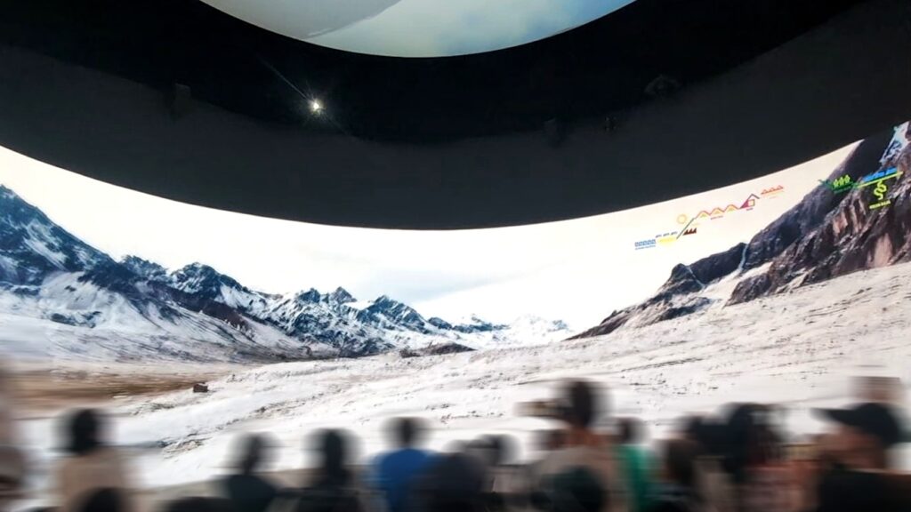 大画面と天井スクリーンを使ったシアター形式の空間で、